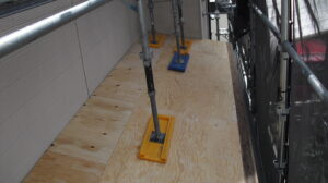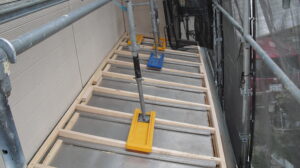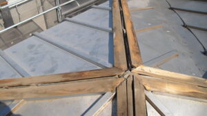 こちらは最初に骨組みの垂木を設置し、その上から野地板を設置しています。