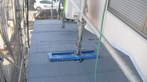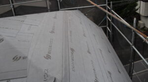 下地の野地板を新しくしてから、防水シートと屋根材を設置いたしました。
