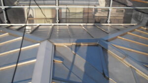 すでに雨漏りとなっており、屋根の状態もひどかったため、全面的に葺き替え工事をさせていただきました。