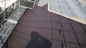 屋根の角度が変わる部分は、屋根材がとぎれ、隙間ができるので、雨水が入りやすいところです。