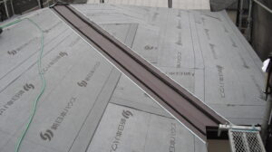 屋根の一番高い部分、棟には土台となる貫板を設置してから、棟板金を設置します。