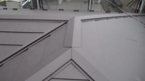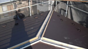 谷板金などの板金を被せることで、雨水が屋根内部に入り込まないようにしています。