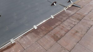 新しい屋根材「稜線横葺ハイブリット」を設置します。