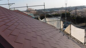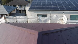 頂上部分には、屋根の面同士の隙間を覆う「棟板金」を設置しました。