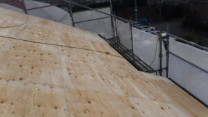 野地板の上から防水シートを設置します。